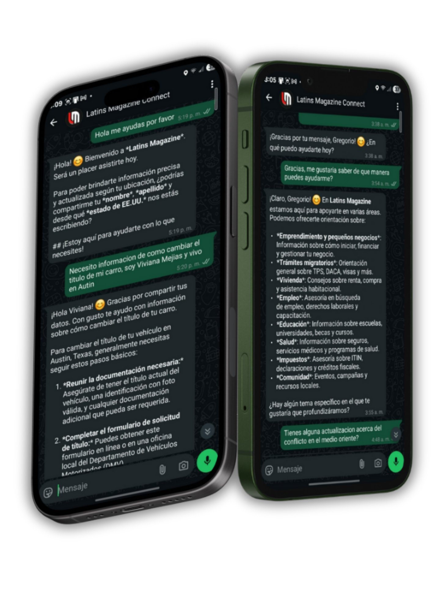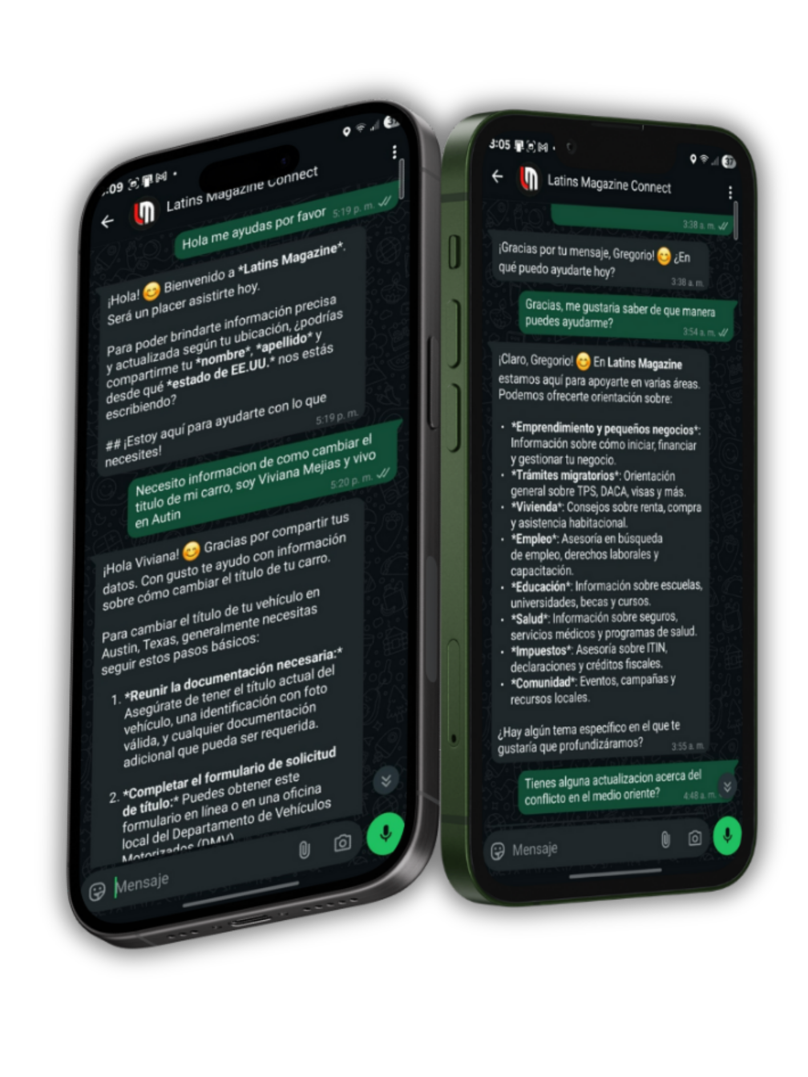 Latins Connect es el primer asistente por WhatsApp creado para la comunidad latina en EE.UU., con tecnología de punta y en tu idioma.